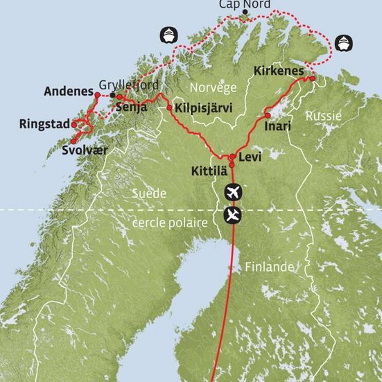 Die einsamen Strassen im Norden Skandinaviens bieten herrliche Ausblicke in die weite Landschaft. Immer wieder kreuzen Rentiere den Weg. Während den drei Tagen an Bord des Postschiffs können Sie die vorbeiziehende Landschaft vom Panoramasaal oder vom Deck aus geniessen und sich entspannen. Idyllische Fischerorte vor schroffen Bergen erwarten Sie auf den Lofoten. Auf einem Tagesausflug erkunden Sie die Inselgruppe auf eigene Faust, bevor die Reise über die spekakuläre Insel Senja und mit einer Fahrt durch die endlosen Weiten Lapplands abgerundet wird.