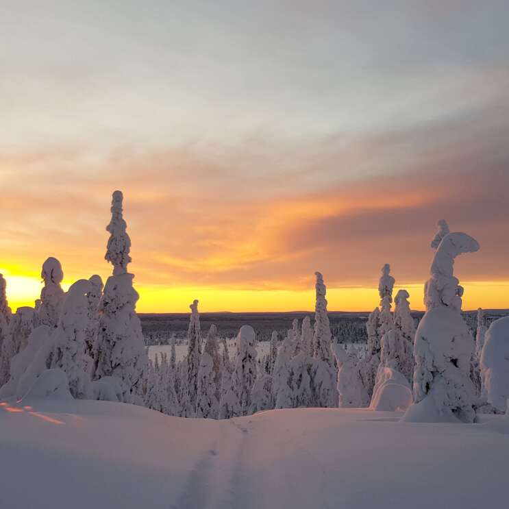 Direktflug nach Rovaniemi und Übernahme des Mietwagens. Dank der in Finnland üblichen Winterreifen mit Spikes gewöhnen Sie sich schnell ans Fahren auf schneebedeckten Straßen – und es macht sogar richtig Spass. Nach ca. zwei Stunden Fahrt erreichen Sie Salla.