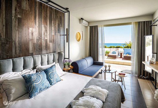 - 26-30 qm, Suite, Meerblick, Sitzecke, Dusche, Badewanne, Bademantel, Badeslipper, Haartrockner, Fliesen, Klimaanlage, Minibar kostenpflichtig, Safe (kostenpflichtig), TV (Sat-TV), Kaffeemaschine, Terrasse, direkter Poolzugang, Gemeinschaftspool