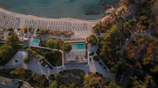 Schon in dritter Generation führt die Familie des Erbauers Yannis Sarantis die familienfreundliche Bungalowanlage. Harmonisch in die Naturlandschaft eingefügt, ist sie eine echte Wohlfühloase.