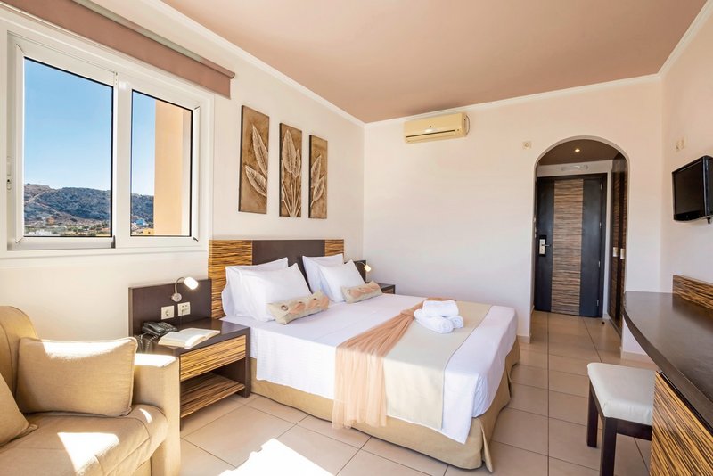 - 21-25 qm, Doppel, Hauptgebäude, Gartenblick, Poolblick, Bettwäsche, Handtücher und Matratzen aus 100% Bio-Baumwolle, kombinierter Wohn-/Schlafraum, Dusche, Haartrockner, Klimaanlage, Safe, TV (Sat-TV), WLAN, Kaffee/Tee, Kühlschrank, Balkon