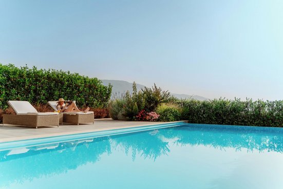 - 5 Pools: beheizbar, Sonnenschirme, Liegen, Badetuch, Poolservice