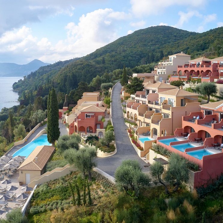Adults-only-Hotel der Luxusklasse! Erlesene Suiten sind Ihr Urlaubsdomizil – auf Wunsch mit privatem Pool. Bodentiefe Fenster geben den Blick frei auf das Ionische Meer. Am Strand und am Pool stehen Liegen, Badetücher und Schirme für Sie bereit.