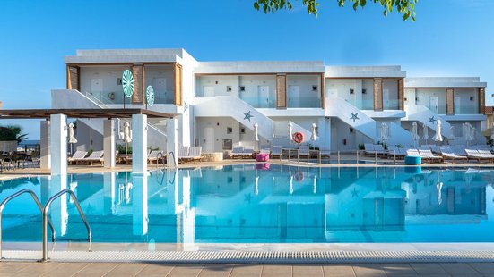 Das Hotel empfängt Sie mit sommerlicher Einrichtung und einem großen Angebot an Unterhaltung und Wellness. Familien entspannen im gemütlichen Örtchen Gouves ebenso wie Alleinreisende.