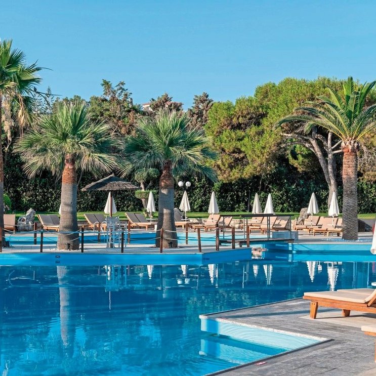 - 31-35 qm, Familien, Hauptgebäude, Meerblick, Poolblick, optisch getrennter Wohn-/Schlafraum, 1 Doppelbett, 2 Sofabetten, 1 Bad, Dusche oder Badewanne, WC, Bademantel, Haartrockner, Klimaanlage, individuell regulierbar, Minibar kostenpflichtig, Safe, 1 TV (Sat-TV), Kaffee/Tee, Balkon oder Terrasse, Kopfkissen-Menü, hochwertige Badartikel, bei Ankunft im Zimmer Wasser, Gebäck