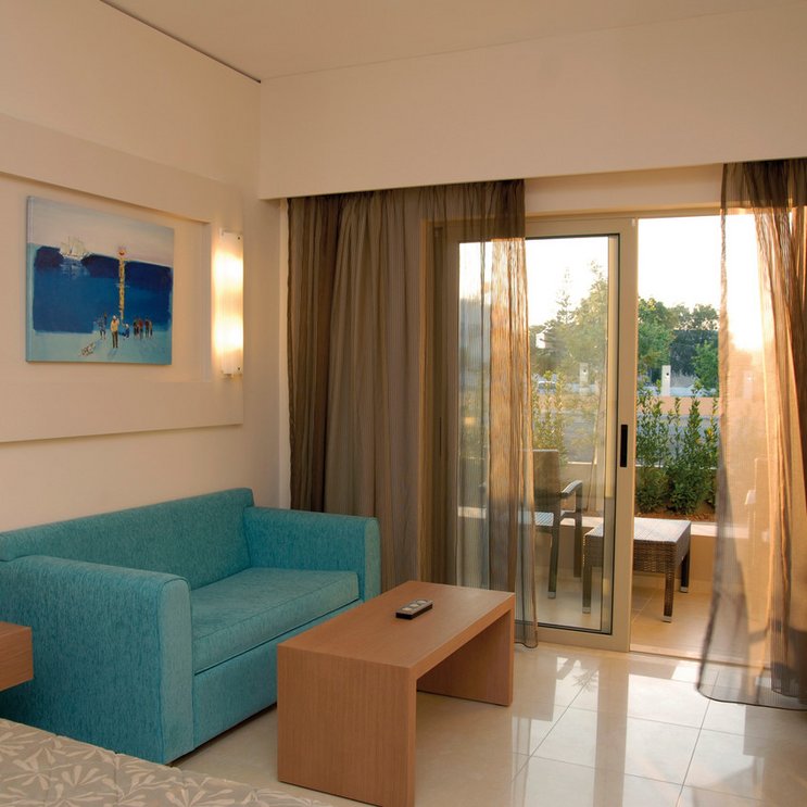 - 36-40 qm, Juniorsuite, Gartenblick, kombinierter Wohn-/Schlafraum, Sitzecke, 1 Bad, Dusche oder Badewanne, Haartrockner, Klimaanlage, Safe, 1 TV (Sat-TV), Kühlschrank, Balkon oder Terrasse (möbliert)