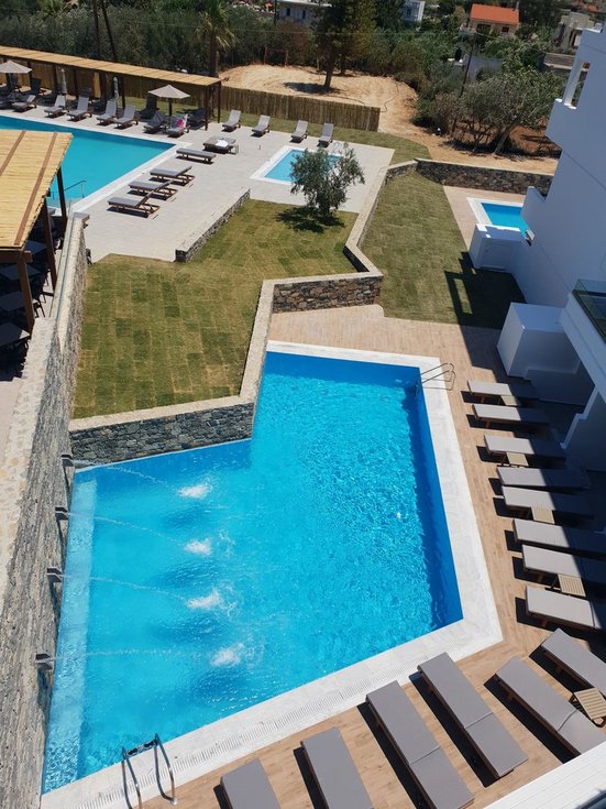 Das Urlaubshotel überzeugt durch sein modernes Ambiente. Heller Marmor glänzt in der Lobby. Komfortable Liegen laden zum Chillen am Pool ein. Einige Zimmer bieten direkten Poolzugang. Lust auf Meer? Auf zum langen Sandstrand von Amoudara!