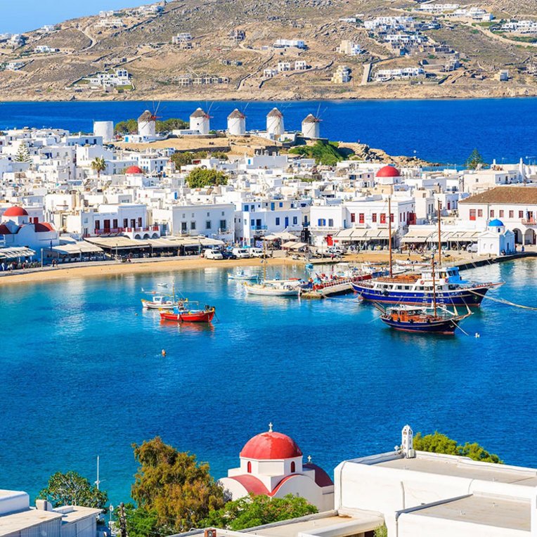 In der hübschen Altstadt von Mykonos-Stadt laden zahllose Restaurants, Bars, Strassencafés und Geschäfte zum Bummeln und Feiern ein. An den berühmten Stränden Paradise und Super Paradise tanzen Feierfreudige bis die Sonne aufgeht und an den Häfen reihen sich die Luxusyachten. Doch die Insel hat auch ein anderes, weniger bekanntes Gesicht: Entdecken Sie strohgedeckte Windmühlen in malerischen Landschaften, kosten Sie inseltypische Spezialitäten wie den Pfefferkäse Kopanisti, luftgetrocknete Würste mit Kräutern oder köstliche Mandelbiscuits in pittoresken Dörfern.
