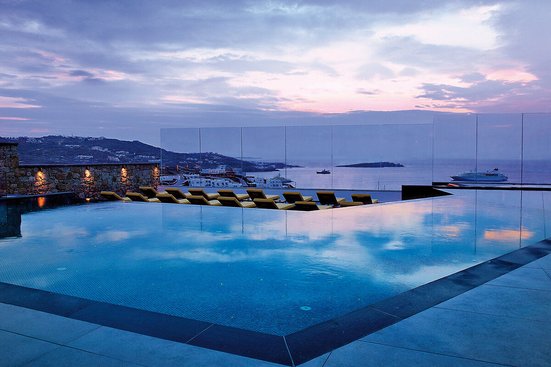 Ein 5-Sterne-Erlebnis – über der Ägäis thronend. Das Luxus-Refugium hebt alle Aspekte des mykonischen Lebens auf luxuriöse Art hervor.