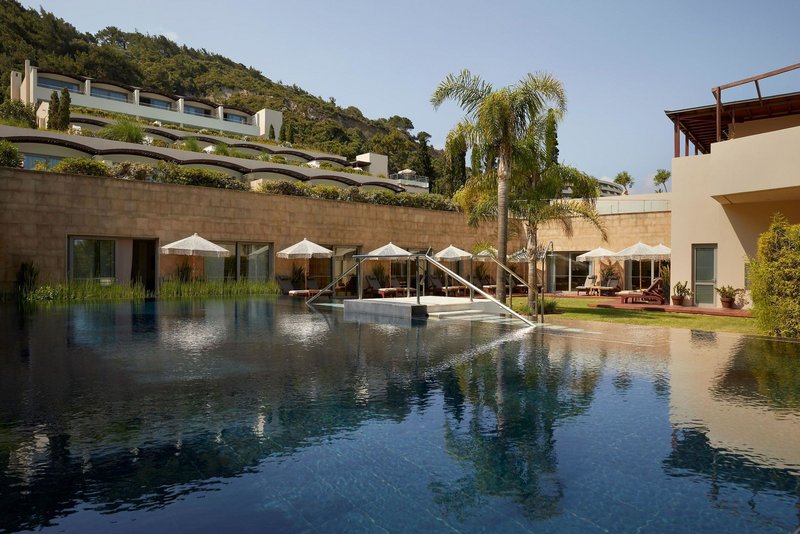 - 41-45 qm, Suite, Landblick, Couch, Dusche, Badewanne, Bademantel, Badeslipper, Haartrockner, Klimaanlage, Minibar kostenpflichtig, Safe, 1 TV (Sat-TV), Kaffeemaschine, Kaffee/Tee, Terrasse (möbliert), Privatpool, Kopfkissen-Menü, Zutritt zur Club-Lounge, Aufdeck-Service, Pooltuch, bei Ankunft im Zimmer Obstkorb, Flasche Sekt