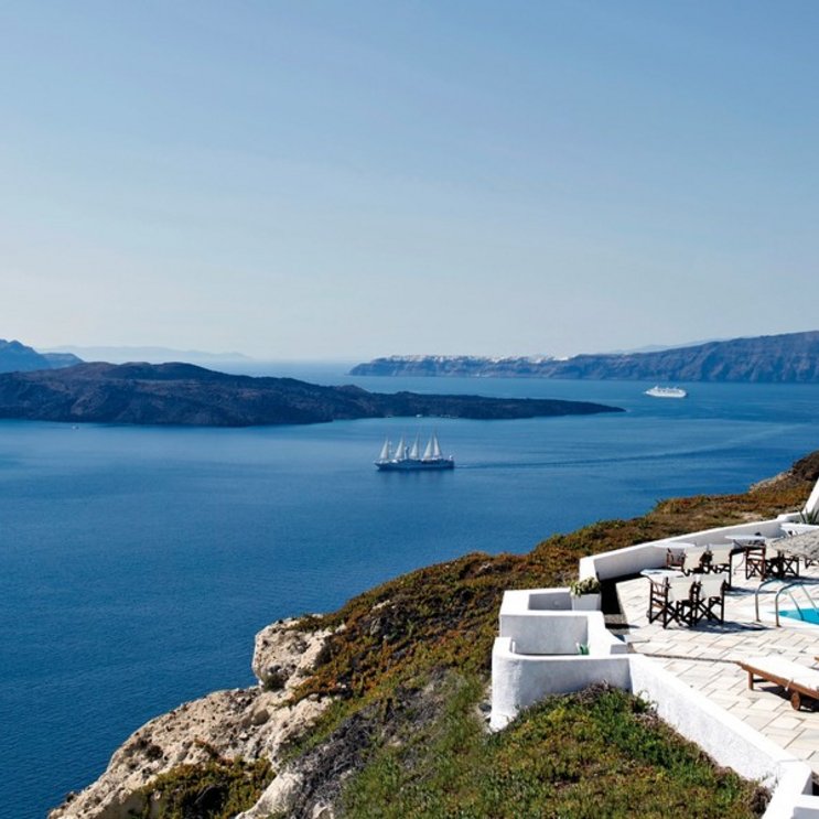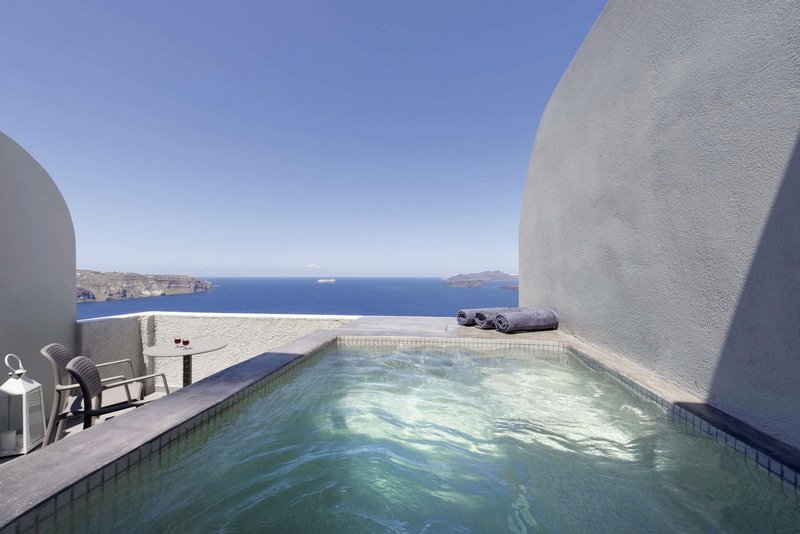 Der Pool liegt direkt am Rande des Kraters – spektakulär! Durch das Wasser gleiten, die Weite des Meeres und des Himmels erleben. Innen überzeugt das kleine Hotel mit geschmackvollem Interieur.