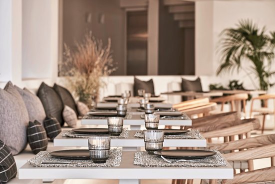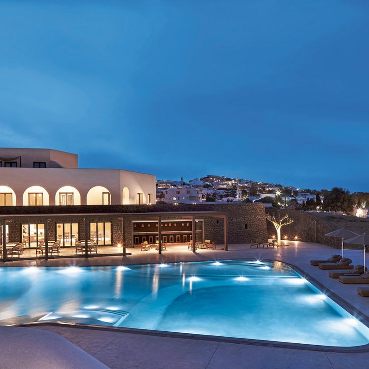 In einer Mischung aus schlichter Eleganz und typischem Kykladenstil empfängt das moderne Hotel seine Gäste. Genießen sie griechische Gastfreundschaft und atemberaubende Ausblicke!
