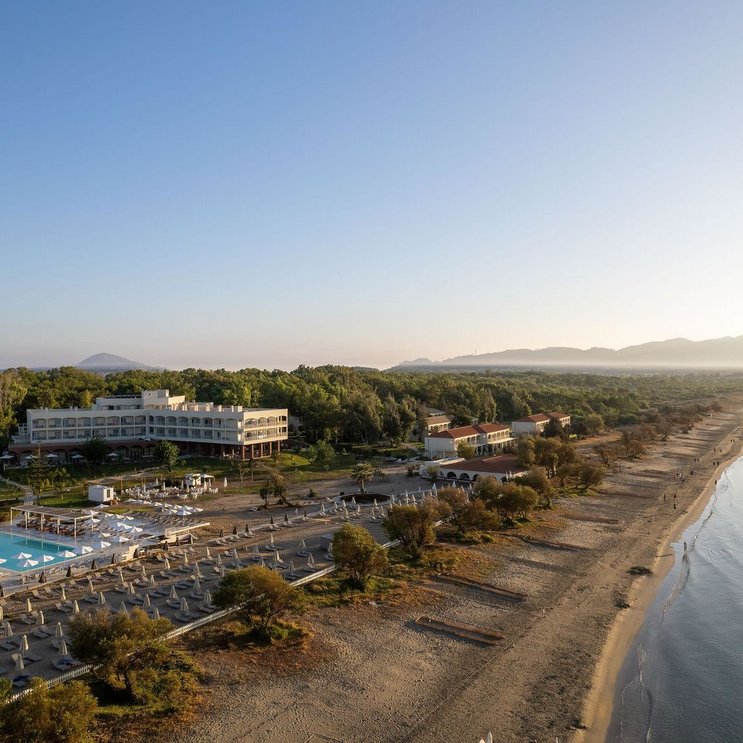 An der bezaubernden Laganas Bay reicht der Wald bis zum goldenen Sandstrand. Hier am Strand liegt das Komforthotel, das beliebt ist bei Jung und Alt.