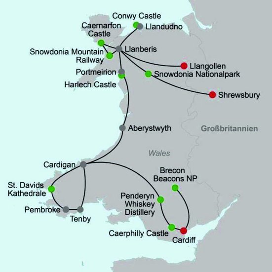 Willkommen in Wales – dem Land der vielen Gesichter, grossen Traditionen, Mythen und Legenden! Hier finden Sie atemberaubende Landschaften und bezaubernde Schlösser und Burgen abseits der ausgetretenen Pfade. Lassen auch Sie sich von dem Charme des kleinsten der britischen Landesteile begeistern!