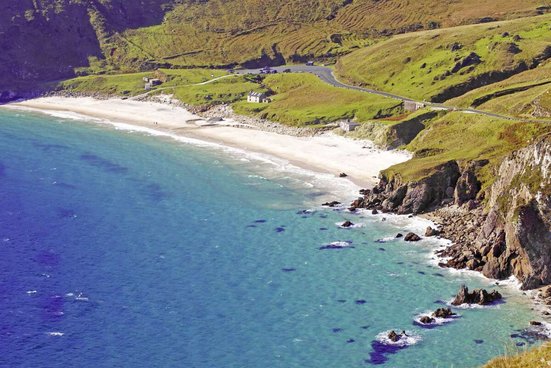 Heute fahren Sie weiter in Richtung Süden in die zauberhafte Region Mayo. Machen Sie Halt in Ballina um sich den Ballina Quay anzuschauen. Vor dem altehrwürdigen Pier am Flussufer des Moy liegen meist viele kleine Boote. Besonders auffallend ist das Wrack eines grösseren Schiffes in der Mitte des Flusses. Der Pier ist der letzte „Discovery Point“ auf Mayo’s Wild Atlantic Way. Danach Weiterfahrt Richtung Achill Island. Sie ist die grösste, vorgelagerte Insel Irlands und ist durch eine Brücke mit dem Festland verbunden. Die Landschaft bezaubert mit traumhaften Stränden, schroffen Bergen, zerklüfteten Klippen und malerischen Dörfern. Zu den Attraktionen der Insel gehören auch das Cottage, in dem der Dichter Heinrich Böll seine Sommerferien verbrachte und sein „Irisches Tagebuch“ schrieb, in dem er die besondere Gastfreundschaft und Landschaft der Region hervorhob. Die Fahrt führt durch eine schmale Meerenge, dem Achill Sound und entlang des Atlantic Drives. 2 Nächte im Raum Mayo. Ca. 145-255 km/ca. 2,5-4,5 Std. (Frühstück)