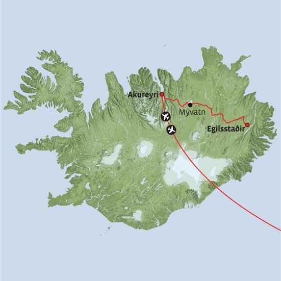 Kontiki-Direktflug nach Akureyri und Mietwagenübernahme. Nach Ankunft heissen Sie unsere Gästebetreuer:innen und Ausflugspartner herzlich willkommen. Anschliessend Fahrt zum Mývatn-Gebiet, wo Sie zwei Mal übernachten.
