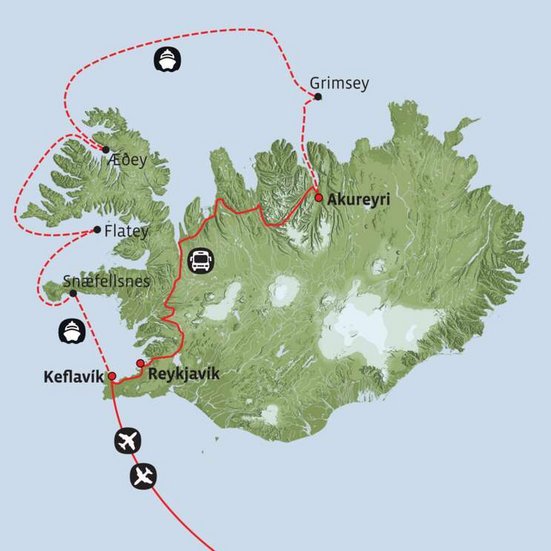 Gerne planen wir für Sie eine individuelle Verlängerung in Island. Entdecken Sie die Insel während einer Mietwagenrundreise (z. B. auch direkt ab Akureyri).