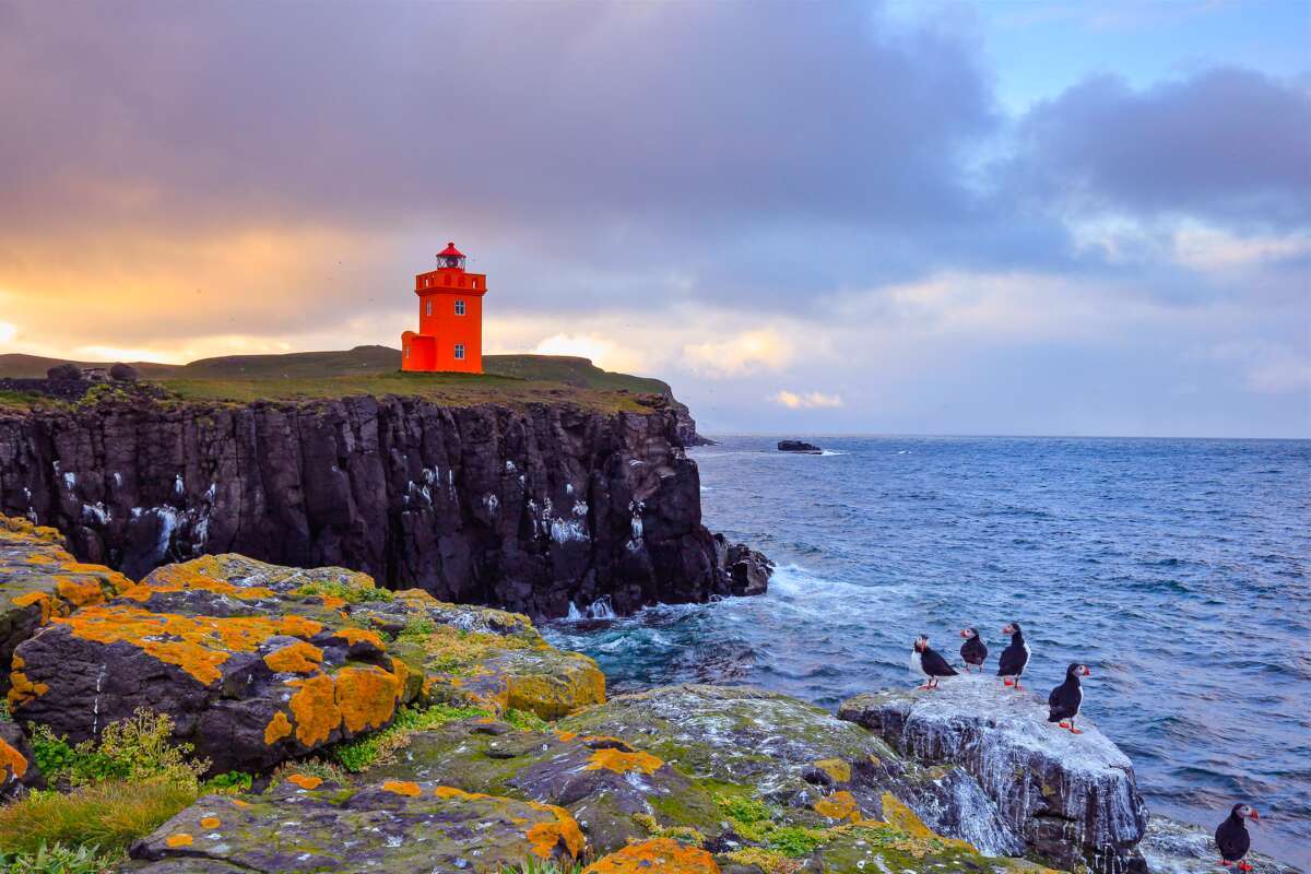 Die flache Bucht von Breiðafjörður ist mit Hunderten von Inseln und Schären gespickt. Auf der Insel Flatey erkunden Sie ein traditionelles Fischerdorf. Gryllteisten und grosse Papageitaucher-Kolonien brüten an den Küsten und im Landesinnern finden sich Odinshühnchen.