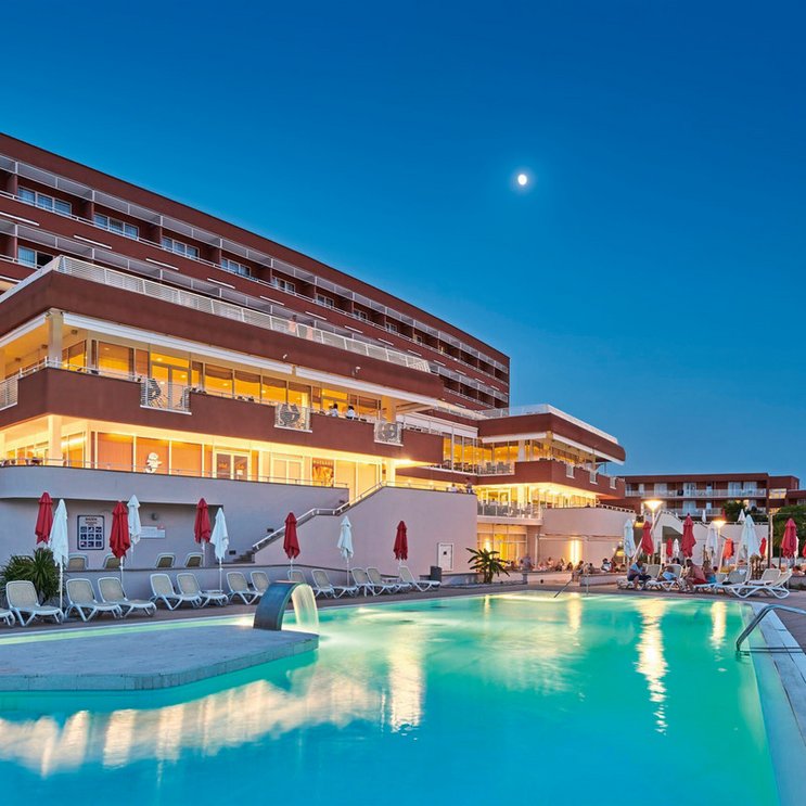 Auf einer bewaldeten Anhöhe in der gepflegten Feriensiedlung Blaue Lagune liegt das beliebte Resort. Zum Kiesstrand mit Felsplateaus sind es nur wenige Schritte. Nichts wie hin!