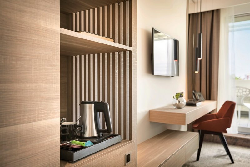 - Doppel, renoviert, Doppelbett, Schlafsessel, Dusche oder Badewanne, WC, Bademantel, Badeslipper, Haartrockner, Klimaanlage, Heizung, Minibar kostenpflichtig, Safe, TV (Sat-TV, Flachbildschirm), WLAN, Wasserkocher, Kaffee/Tee, Balkon