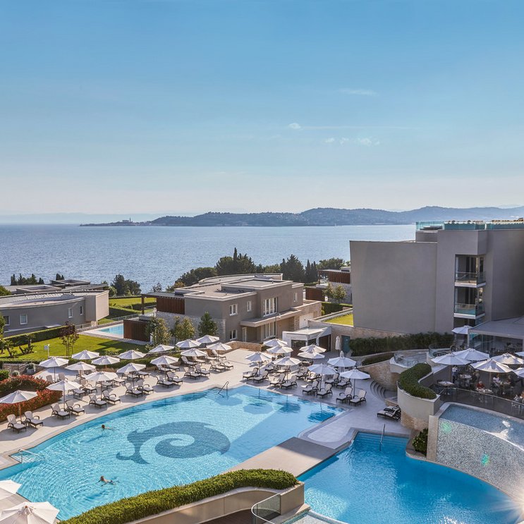 Das Hotel: Das elegante Kempinski Hotel Adriatic befindet sich oberhalb des Meeres und bietet einen privaten Kiesstrand in ca. 300 m Entfernung, mit abgetrenntem "Adults only" Bereich über Treppenstufen oder mit einem Golf-Caddy-Shuttle erreichbar. Liegen, Cabanas und Schirme sowie eine traumhafte grüne Umgebung und eine herrliche Aussicht auf Slowenien, Italien und die Julischen Alpen. Die 2 Restaurants bieten istrische, mediterrane und internationale Küche, die beliebten Hotel-Bars perfekte Cocktails, delikate Snacks und erfrischende Eiscrème. Im "Kempi Kids Club" sind Kinder zwischen 3 und 12 Jahre willkommen. Ein Spa- und Wellnessbereich mit beheizbarem Hallenbad und zwei Swimmingpools (einer davon beheizt von Mai bis September), Kinderpool, Jacuzzi, kostenfreies WLAN im gesamten Hotel runden das Angebot ab. Parkgebühren EUR 10 bis 20 proTag. Der Flughafen Pula ist ca. 90 km entfernt.