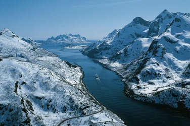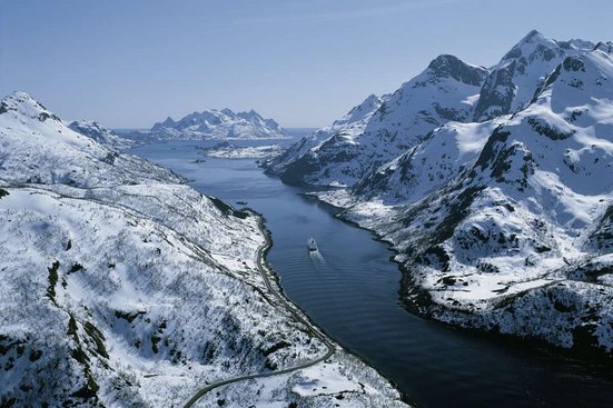 Die Hurtigrute im Winter ist ein Erlebnis der besonderen Art. Die Küstenlandschaft präsentiert sich in einem weissen Kleid, die Berge glitzern im Schnee. Höhepunkte sind die Inselgruppe der Lofoten und die beeindruckende Helgelandküste, die in dieser Jahreszeit besonders faszinieren. Auf einem optionalen Ausflug erfahren Sie mehr über die Tradition des Stockfischs, der zwischen Februar und Mai auf den Lofoten an Holzgestellen getrocknet wird.