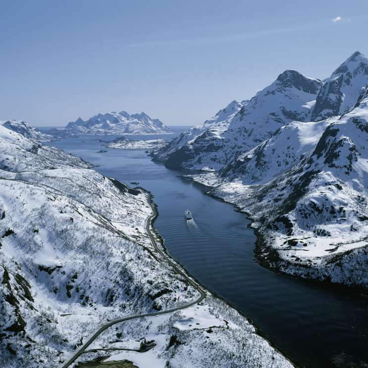 Hurtigrute im Winter ist eine einzigartige Erfahrung. Die Landschaft ist weiss überzogen vom Schnee. Die Inselgruppe der Lofoten sowie die Helgelandküste zählen zu dieser Jahreszeit zu den beliebtesten Attraktionen auf der südgehenden Reise. Erfahren Sie auf einem optionalen Ausflug mehr über den Stockfisch, welcher zwischen Februar und Mai überall auf den Lofoten an Gestellen getrocknet wird.
