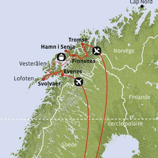 Den heutigen Tag geniessen nochmals, um die Lofoten zu entdecken oder um das Städtchen Svolvær zu geniessen. Am späteren Abend schiffen Sie auf das Postschiff ein, welches Sie über Nacht in Richtung Senja bringt.