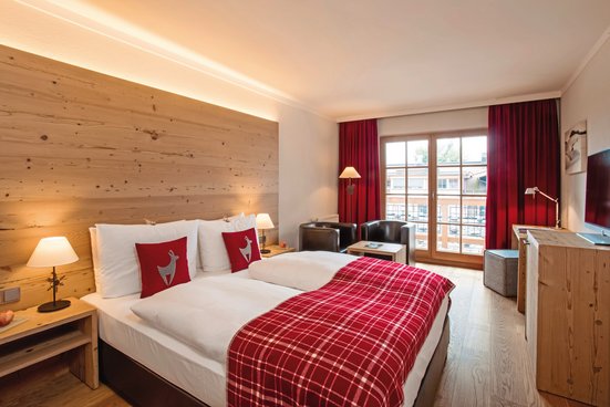 - 31-35 qm, Juniorsuite, Bergblick, Bettwäsche, Handtücher und Matratzen aus 100% Bio-Baumwolle, Dusche, Badewanne, separates WC, Bademantel, Haartrockner, Minibar, Softdrinks, Wasser, Safe, TV (Sat-TV), Balkon