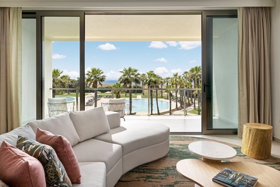 Two Bedroom Suite ca. 103 qm: Mit 2 Schlafzimmern, Wohnbereich mit Küchenzeile und Essbereich. Auch mit Pool- oder Meerblick buchbar.