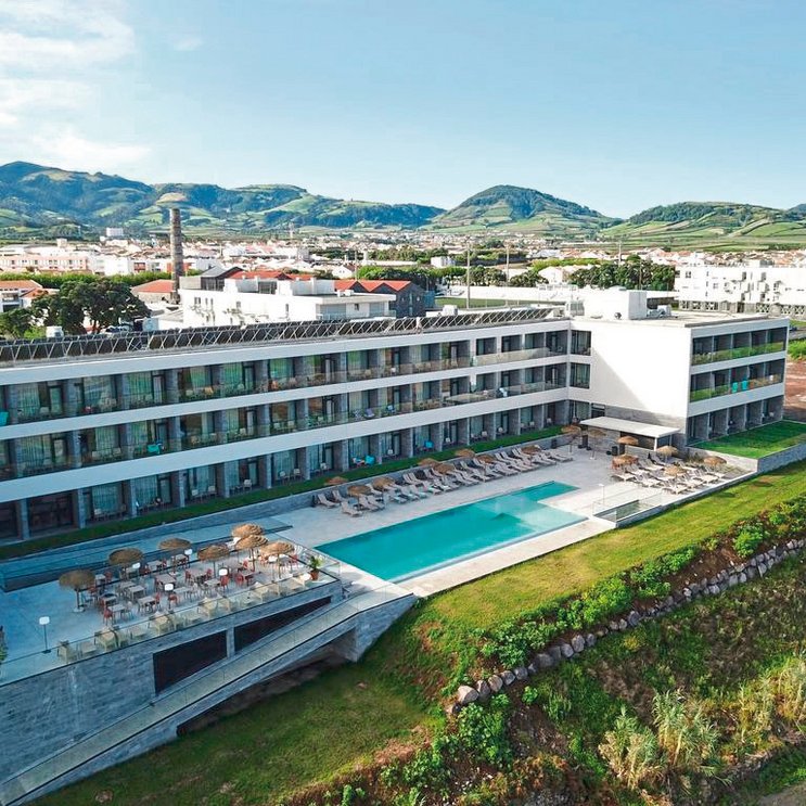 Inspiriert von der umgebenden Natur und dem Vulkanismus, begrüßt Sie das Hotel mit eleganter und stylisher Innendekoration. Der perfekte Ort, um sich verwöhnen zu lassen, zum Beispiel im schönen Spa mit Hallenbad!
