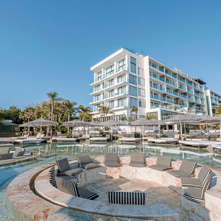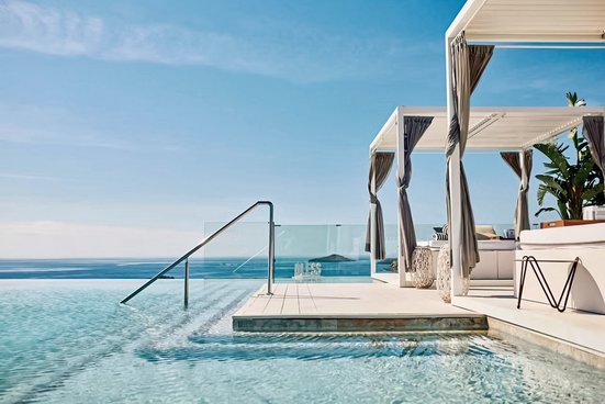 Kosmopolitisches Lifestyle-Hotel auf den Klippen über der Bucht Cala Nova mit spektakulärem Meerblick. Das Interieur ist von Coco Chanel inspiriert, die Küche leitet ein Sternekoch und statt Frisör gibt es ein Hair Spa. Wie geschaffen für Hedonisten.