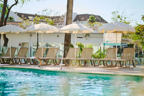 Helle und freundliche Zimmer in den Farben von Meer und Strand, entspanntes Ambiente und hoher Komfort: ein ausgezeichnetes Hotel mit Blick auf das Mittelmeer und den See Es Llac Gran!