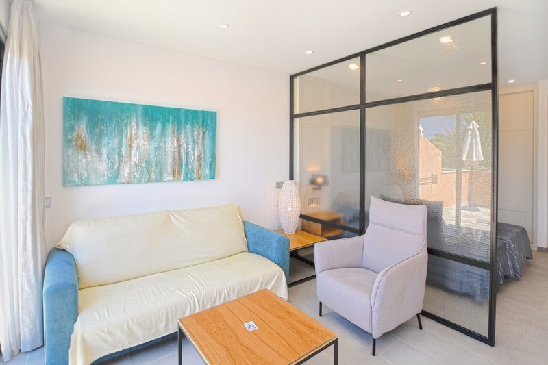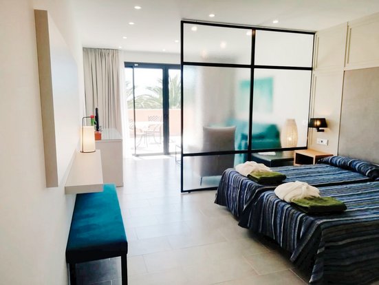 - 31-35 qm, Juniorsuite, für Erwachsene ab 18 Jahre, Superior, Nebengebäude, Poolblick, optisch getrennter Wohn-/Schlafraum, bodengleiche Dusche, Bademantel, Haartrockner, Klimaanlage, Minibar kostenpflichtig, Safe, 1 TV (Sat-TV, Flachbildschirm), WLAN, Wasserkocher, Mikrowelle, Kaffee/Tee, Balkon oder Terrasse (möbliert)