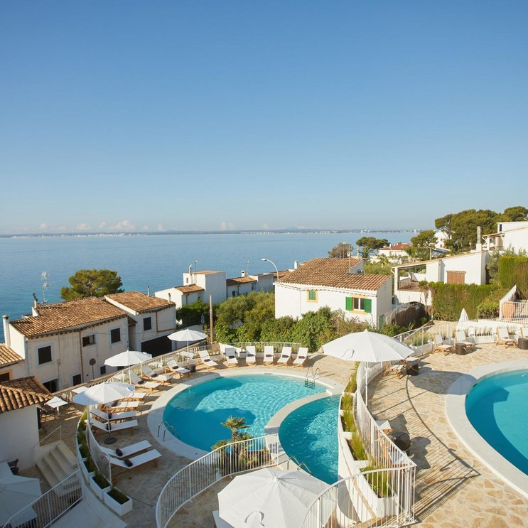Genießen Sie einen ruhigen Aufenthalt am Meer – mit herrlichem Panoramablick von den Poolterrassen auf das azurblaue Mittelmeer.