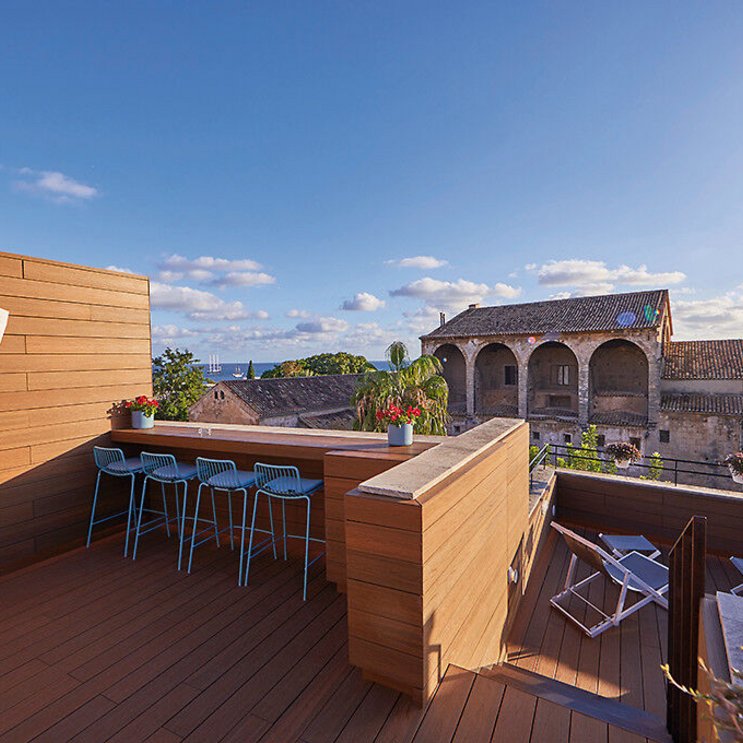 - Dachterrasse mit traumhaftem Blick auf die Kathedrale, das Meer und das Schloss Bellver