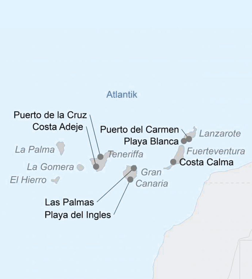 Währung: Auf den Kanaren wird mit Euro bezahlt. Alle gängigen Kreditkarten werden akzeptiert.