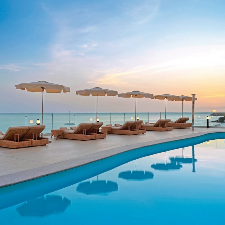 - 36-40 qm, Doppel, Premium, Meerblick, 1 Bad, Dusche, WC, Bademantel, Klimaanlage, zentral gesteuert, Safe, 1 TV (Sat-TV), WLAN, Balkon (möbliert), late check-out (nach Verfügbarkeit), Pooltuch, Nespresso-Kaffeemaschine und Teezubehör