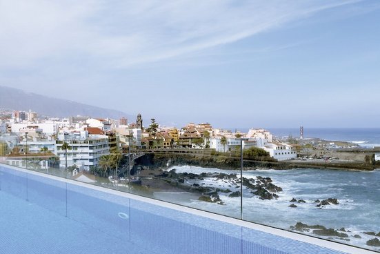 Top-Lage an der Uferpromenade mit Blick auf Meerwasser-Schwimmbad und Atlantik. Von der Dachterrasse ist die Aussicht noch besser – genießen Sie hier herrliche Sonnenuntergänge. Auch die schöne Altstadt von Puerto de la Cruz ist nicht weit entfernt.