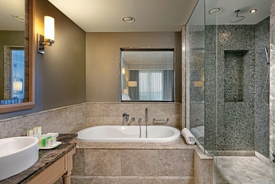 - 91-100 qm, Suite, mit Verbindungstür, Meerblick, Gartenblick, 2 separate Schlafzimmer, separater Wohnraum, Ankleidebereich, 2 Einzelbetten, Doppelbett, Sofabett, 2 Bäder, Dusche, Whirlwanne, 2 WCs, Bademantel, Badeslipper, Haartrockner, Kosmetikspiegel, Fliesen, Laminatboden, Klimaanlage, individuell regulierbar, Minibar, Auffüllung täglich, Softdrinks, Snacks, Safe, 3 TVs (Sat-TV), Wasserkocher, Kaffee/Tee, Balkon, Kopfkissen-Menü