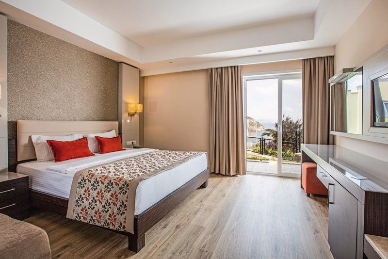 - 31-35 qm, Doppel, Hauptgebäude, Meerblick, Doppelbett, Sofabett, Schlafsessel, Dusche, Haartrockner, Klimaanlage, zentral gesteuert, Minibar, Auffüllung täglich, Wasser, Safe, TV (Sat-TV, Flachbildschirm), Kaffee/Tee, Balkon (möbliert)