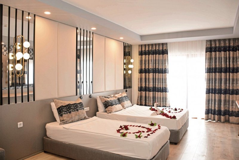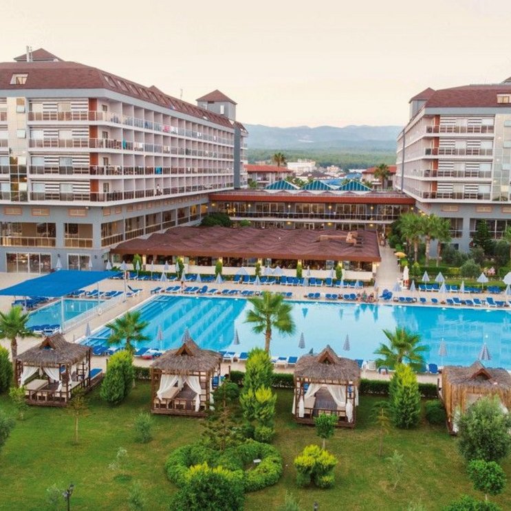 - Am Strand befindet sich Eftalia Island mit Aquapark, Restaurants, Snackcorner, Bars, Disco, Amphitheater, diverse Geschäfte und Kinderpools mit Rutschen (15.4.-31.10., wetterbedingt stundenweise geöffnet). Hier findet auch die gesamte Animation statt.