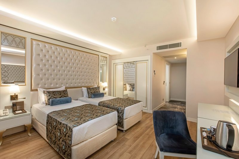 - Familien, mit Verbindungstür, Hauptgebäude, 2 separate Schlafzimmer, Sitzecke, Twinbett, Doppelbett, 1 Bad, Dusche, WC, Haartrockner, Klimaanlage, individuell regulierbar, Minibar, Auffüllung regelmäßig, Safe, 2 TVs (Sat-TV, Flachbildschirm), Balkon