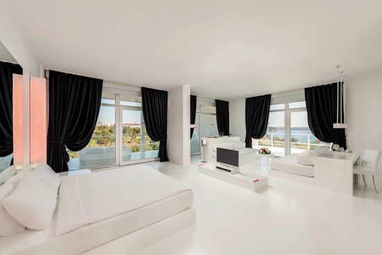 Das Deluxe-Haus verfolgt ein klares Design-Konzept: (fast) alles ist in weiß gehalten. Das gibt eine stylische, helle Atmosphäre. Der Konyaalti-Strand liegt Ihnen hier zu Füßen – herrlich! Machen Sie auch Ausflüge in Antalyas Altstadt: zu Fuß, mit dem Taxi oder Dolmus.