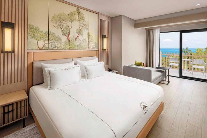 - 51-60 qm, Familien, mit Verbindungstür, Nebengebäude, Meerblick, 2 separate Schlafzimmer, Einzelbett, Doppelbett, 2 Bäder, Dusche, WC, Bademantel, Badeslipper, Haartrockner, Klimaanlage, individuell regulierbar, Minibar, Safe, Bügelbrett, Bügeleisen, TV (Sat-TV, Flachbildschirm, Smart-TV), Wasserkocher, Kaffeemaschine, Kaffee/Tee, Balkon oder Terrasse, Kopfkissen-Menü