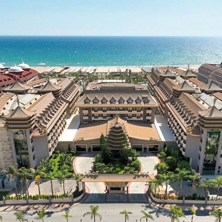 Dieses familienfreundliche Luxus-Resort in direkter Strandlage empfängt Sie mit Badelandschaft, Tennisplatz und elegantem Wellness-Bereich. Das exklusive Hotel punktet mit exotischer Architektur in chinesischem Stil und seiner Nähe zu Side.