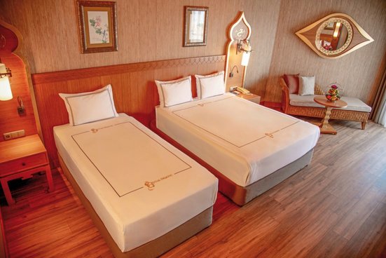 - 36-40 qm, Doppel, Superior, Hauptgebäude, Landblick, Doppelbetten (1 Doppel- oder 2 Einzelbetten), Dusche, WC, Badeslipper, Haartrockner, Laminatboden, Klimaanlage, zentral gesteuert, Minibar, Auffüllung regelmäßig, Safe, TV (Sat-TV), Wasserkocher, Balkon