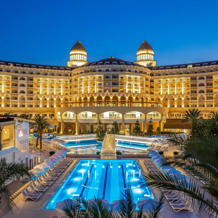 Luxus und lukullische Genüsse inclusive offeriert dieses palastartige Hotel seinen Gästen, das auch mit direkter Strandnähe und großem Süßwasserpool punkten kann. Auf die Kleinsten wartet der Miniklub.