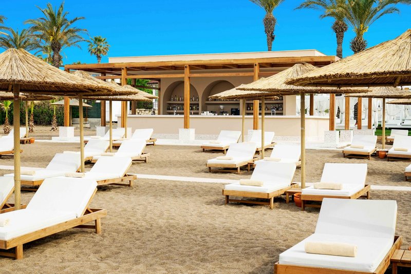 - Sandstrand: leicht abfallend, gehört zur Anlage, ca. 350 m lang, Sonnenschirme, Liegen, Cabaña (kostenpflichtig), Strandtuch/Badetuch, Strandservice (ca. 1.4.-31.10.), ca. 1.4.-31.10.