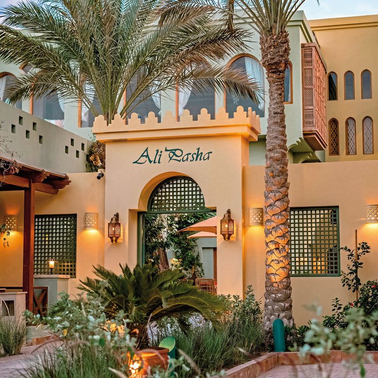 Vivre la magie des 1001 nuits : l’architecture orientale enchantera avec ses fenêtres en arc, ses sculptures, ses mosaïques et ses motifs. Devant la porte : la marina d’Abu Tig avec son ambiance maritime luxueuse.